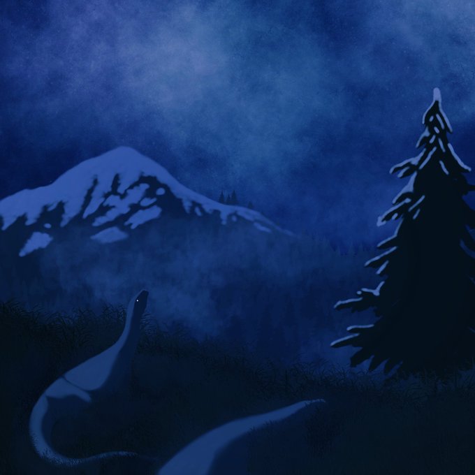 For day 7 of #PRDinovember2021, a pair of female Saturnalia tupinquim choose a secluded spot away from the group to bed down for the night. #Dinovember #paleoart #paleontology #DigitalArtist