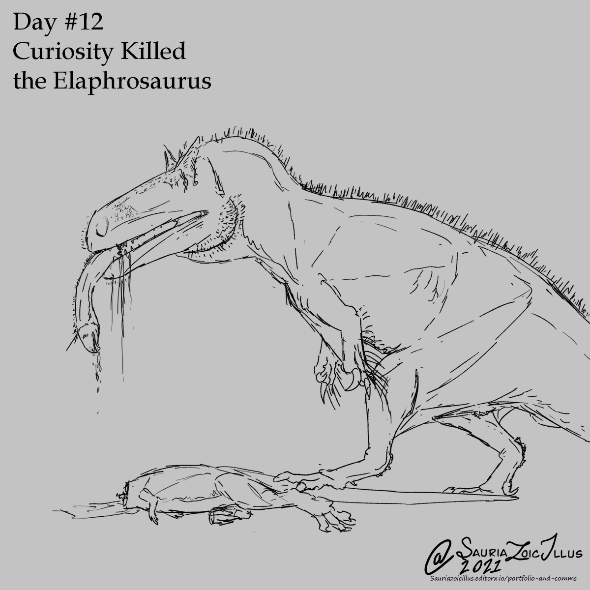 /TW gore . #PRDinovember2021 Day #12 Curiosity killed the Elaphrosaurus. . Taking a break from complex scenes for a bit so I don't burn myself out. . #gore #paleoart #paleontology #sciart #dinosaurs