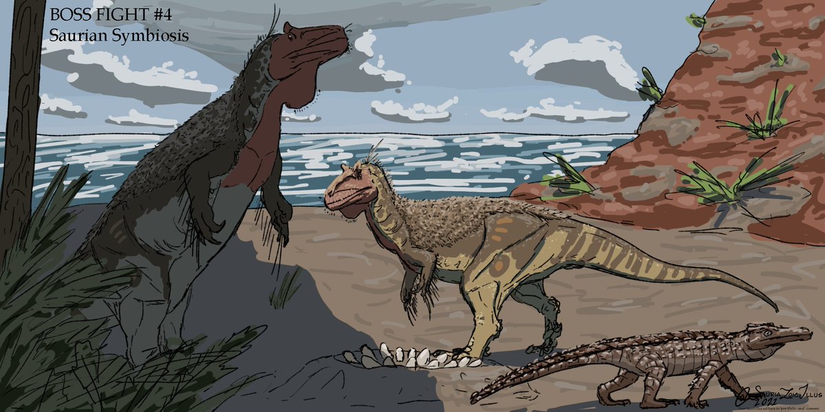#PRDinovember2021 BOSS FIGHT #4 Saurian Symbiosis. . base composition made by @NotPedroAndrade . #paleoart #paleontology #sciart #sciartist #dinosaurs