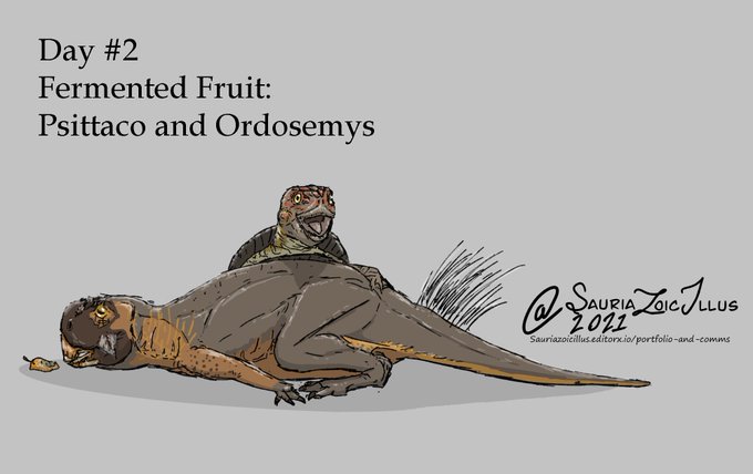 #PRDinovember2021 Day #2 Fermented Fruit: Psittaco and Ordesemys. . #paleoart #sciart #paleontology #dinosaur