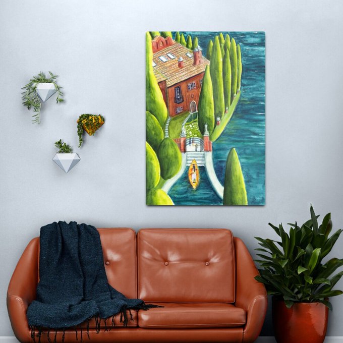 Now up in my #Redbubble shop on lots of stuff tinyurl.com/3abanb53 "The Visit: Lake Como 5" #SupportSmallBusinesses #SmallBusiness #IndependentArtist #GiftIdeas #Painting #LakeComo #LagoDiComo #Italia #Scenery #Landscape #WallArt #Prints #ssStickers #Painting #Art #Decor