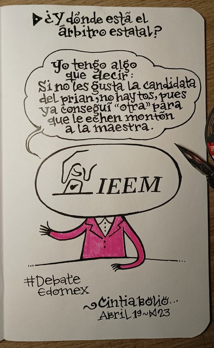🔴¿Y dónde está el árbitro estatal? El IEEM no se entera de la incitación a cometer fraude electoral por parte de la candidata del #PRI, pues anda muy ocupado. #CintiaBolio #CartónPolítico #derecha #prian #MareaRosa #DebateEdomex #19Abril2023