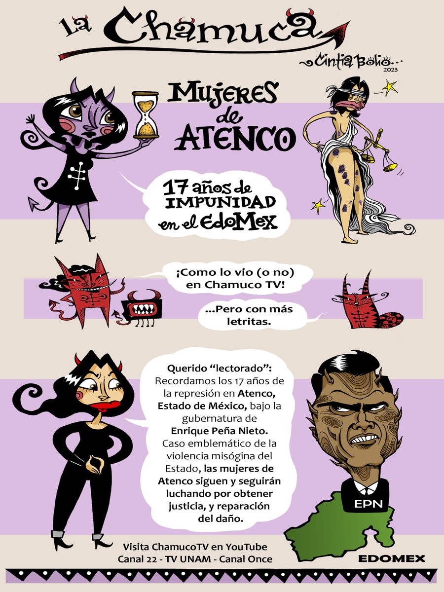 Querido "lectorado": @El_Chamuco de junio va con: #LaChamuca en homenaje a las luchadoras #MujeresDeAtenco + #Estampas de la oposición Es de colección...😈✒️💜 #CintiaBolio #CómicFeminista #CartónPolítico #Justicia #EPN #PRI