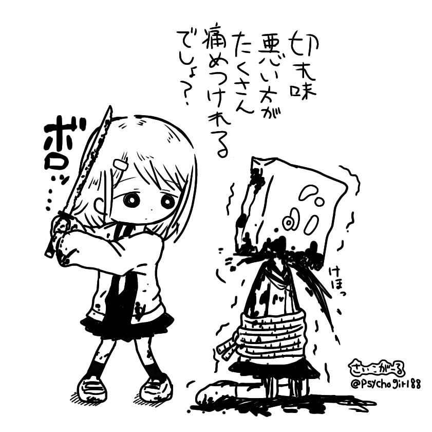 切れ味よかったらすぐ死んじゃうじゃん。 ちょっとなまくらな方が、なかなか死なないから苦痛を与えられるんだよね。 #さいこがーる #イラスト #絵描き #サイコパス #反社会的人格障害 #精神病質 #psychopath #パーソナリティ障害 #サイコキラー #psychokille