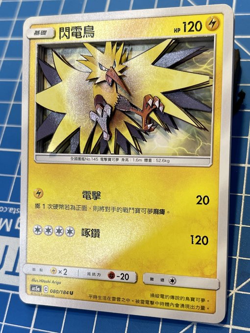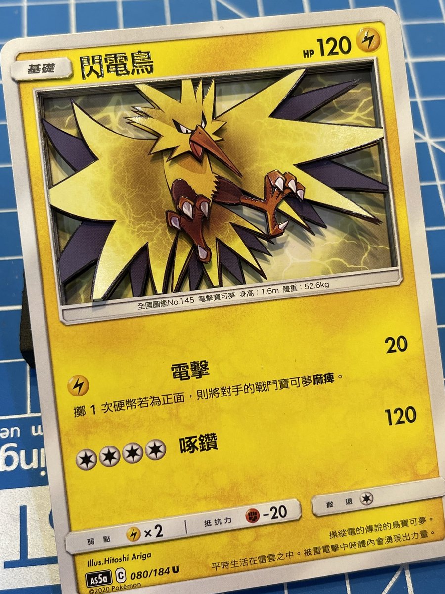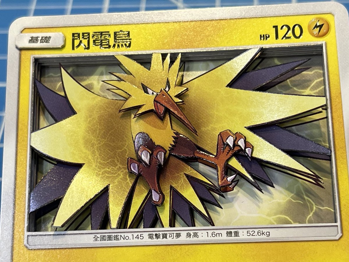 紙雕#82,閃電鳥(サンダー,Zapdos) 傘電傘電~~~~ 休息一下做點輕鬆的 使用材料:7張 (右腳啊~太消耗) #PTCG #ポケカ #シャドーボックス #shadowbox #立體紙雕