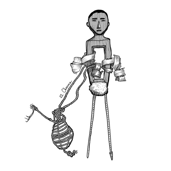 Jour 21 : racine Cette étrange figure, originaire des Kiwai de la région du fleuve Fly en Papouasie-Nouvelle-Guinée, est appelée Imunu. #Pacifinktober #inktober #kiwai #papuanewguinea