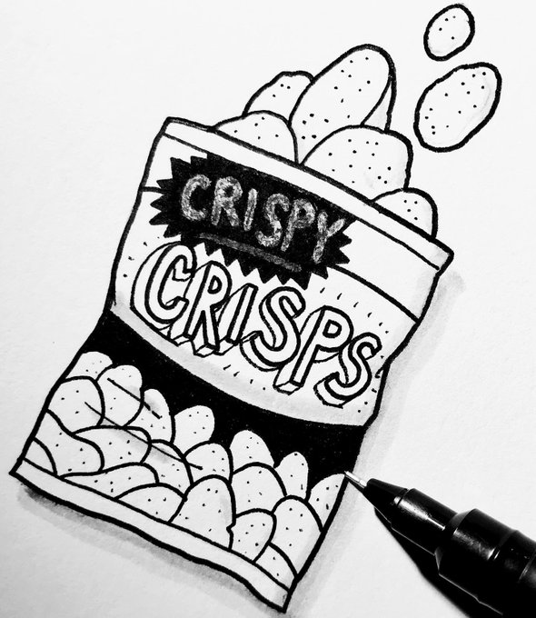 Inktober Day 28 - Crispy #inktober #inktober2021 #inktoberday28 #ink #crispy #crispycrisps #crisps #chips #food #yum #snacks #illustration #art #artwork #drawing #junkfood #packaging #sketch @inktober 😋🖊