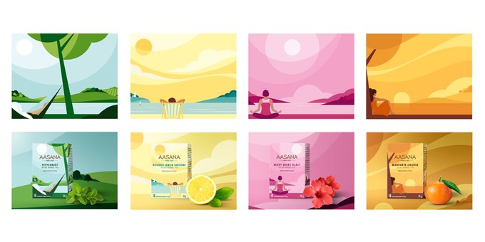 Illustrations for Aasana Tea, a new range by King Cole that has just been launched. #illustration #packaging