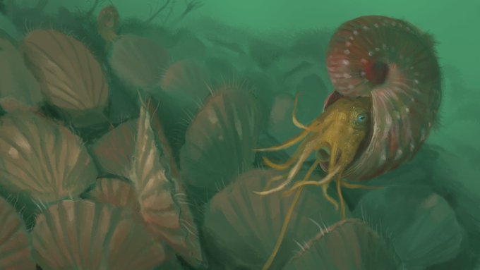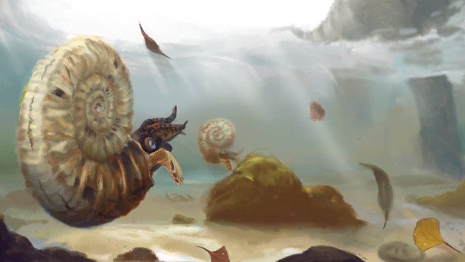 Liparoceras scrounging through a cluster of pseudopecten #paleoart #illustration #Paleoctober2022 #ammonite #jurrasic #Liparoceras twitter.com/jurassicguides…
