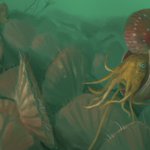 Pleuronautilus malaycus happily floating in a yet-to-be ravaged permian sea #paleoart #illustration #Paleoctober2022 #Nautilus #permian #Pleuronautilus