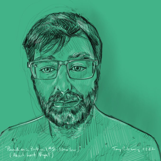 #aboutlastnight “Pandemic Portrait #31” In that nether world between pissed and hungover. #pandemic #portrait #selfportrait #mood #selfie #beard #newyear #digitalart #procreate #sketch #sketchbook #drawing #practice #art #kunst #arte #illustration #covid19 #graphicmedicine