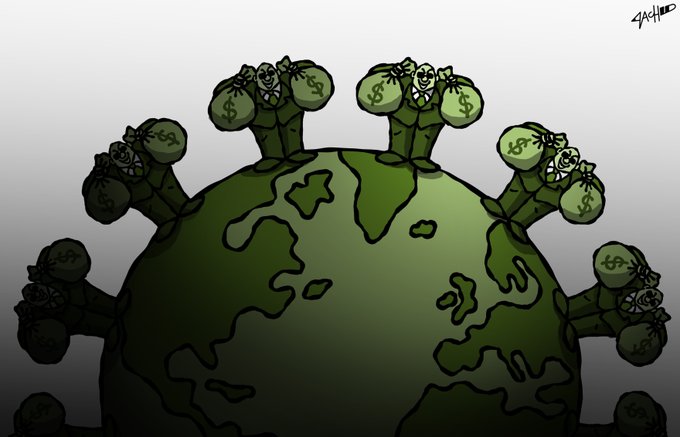 There's also a 'virus' killing the poor: billionaires getting richer despite pandemic. #cartoon #satire #pandemic #billionaire #coronavirus