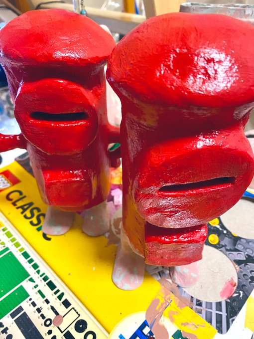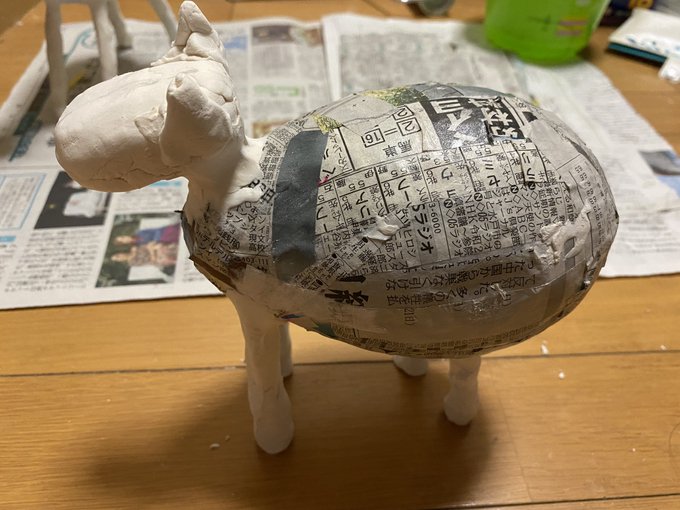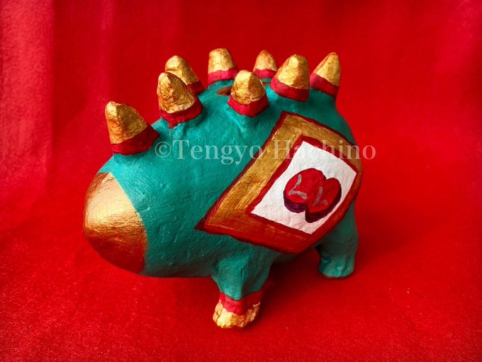 台無しな仕上げをすることで大成功の形にして生きたい。 デザフェスに持っていく予定の新しい子です。 #ハンドメイド #ペーパークラフト #ペーパーアート #張り子 #はりこ #Papiermache #handmade #craft #ハンドメイド好きさんと繋がりたい #デザフェスお品書き #貯金箱