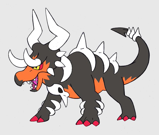 Distant Demon (Fire/Dragon) Ancient paradox form of Houndoom with some characteristics of Mega Houndoom. It is based on the Diabloceratops. #PokemonScarletViolet #Paradoxpokemon