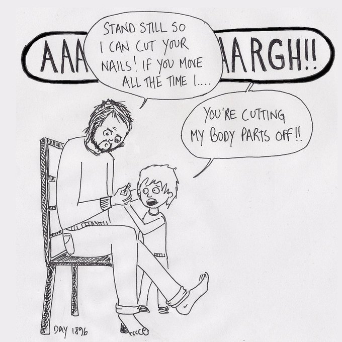 Fatherhood Classicly Doodled 121 Nail cutting #comics #parenting #webcomics #childhood #memories #nails #limbs #children #parents #parenthood #tegeneserie #illustration #drawing #tegning
