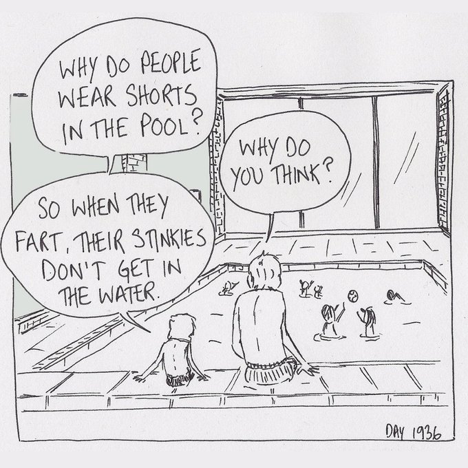 Fatherhood Classicly Doodled 124 Another trip to the swimming pool #comics #parenting #webcomics #childhood #memories #farts #stinky #children #parents #parenthood #tegeneserie #illustration #drawing #tegning #swimming #everyoneactive