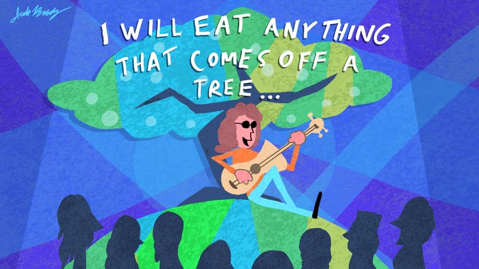 My brother dreamed of me playing a guitar under a tree as a hippie, doing a bad John Lennon impression singing this #digitalart #cartoon #hippie #parody #cartoon #cartoonart