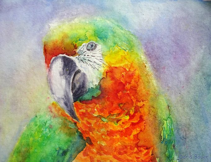 Papageienportrait in Aquarell 20 x 30 cm. Es musste unbedingt etwas mit mehr Farbe sein! Einen schönen Sonntag wünsch ich Euch! dorisbauer.blogspot.com #NoWars #aquarelle #Watercolour #watercolor #Watercolourpainting #watercolor #watercolourportrait #parrot #parrotpainting
