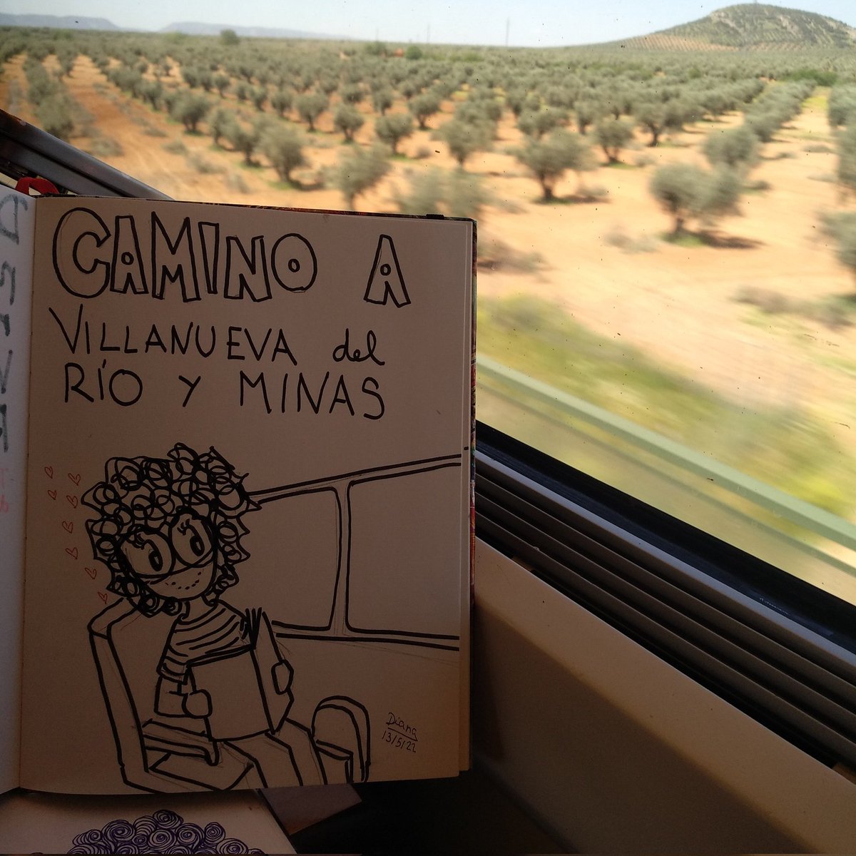 Camino a Villanueva del Río y Minas, para asistir a la I Semana de #PatrimonioIndustrial y #PatrimonioFerroviario de la localidad, con mis dibus 😍😍😍 #undibujoaldia #drawing #illustration #sketch #dibujo #painting #train #doodle #art #artoftheday #artofinstagram #artwork