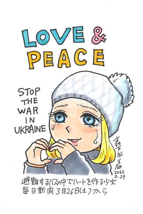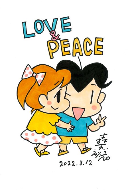 ウクライナの子供たちが笑顔でいられますように🇺🇦 (LOVE&PEACEイラストは #だがしやゴマちゃん で展示販売予定。収益は全てウクライナに寄付します。) #PeaceForUkraine