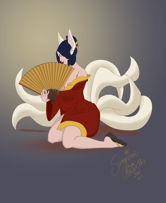 Fan - Day 7 Don't come too close, no matter how you desire her. Her favorite food is in-fact liver and hearts. #inktober2021 #kitsune #art #artist #digitalart #peekaboo #ArtistOnTwitter