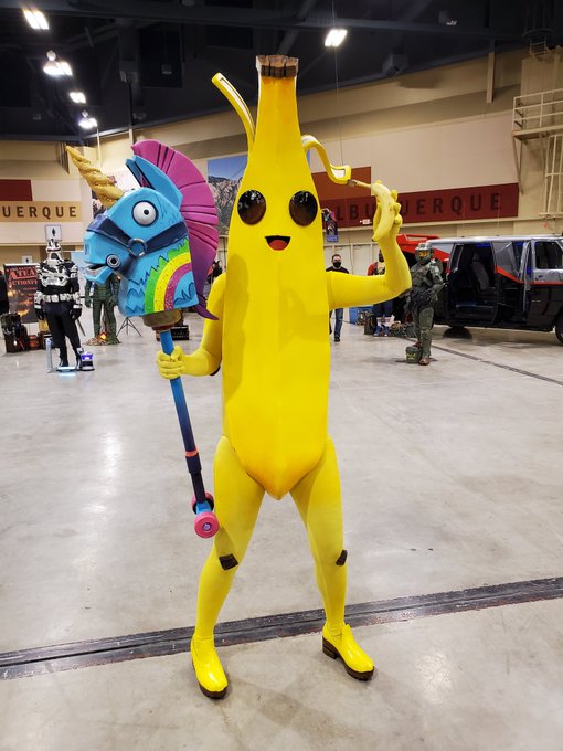 Banana for scale 🍌 (I'll be handing out banana-adjacent candy all day tomorrow @NMcomicexpo =D) @EpicGames #peely #cosplay #halloween2021