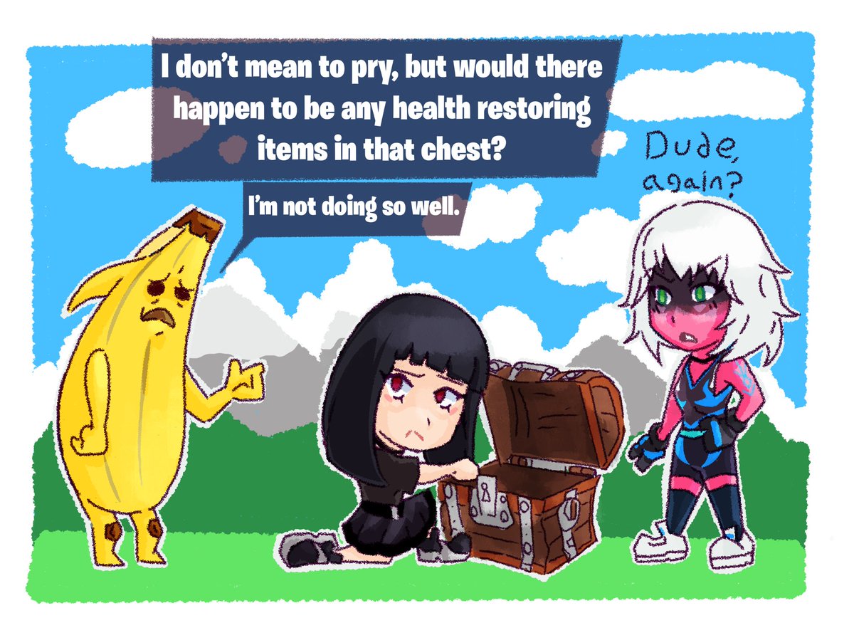 Charlotte and Harlowe help a dear friend #fortnite #FortniteArt #fortnitecharlotte #peely #fortniteharlowe #epicgames #comic