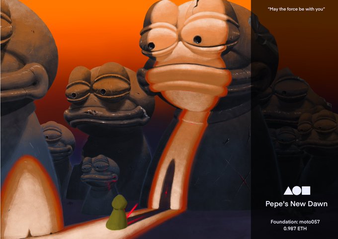 New drop on @withFND 🐸 Pepe’s New Dawn !!! “May the force be with you” @jaggedsoft foundation.app/@moto057/~/124… @nft_asia #nftart #NFTCommunity #NFTs #nftcollector #NFTartist #pepe #pepefrog #FrogFam
