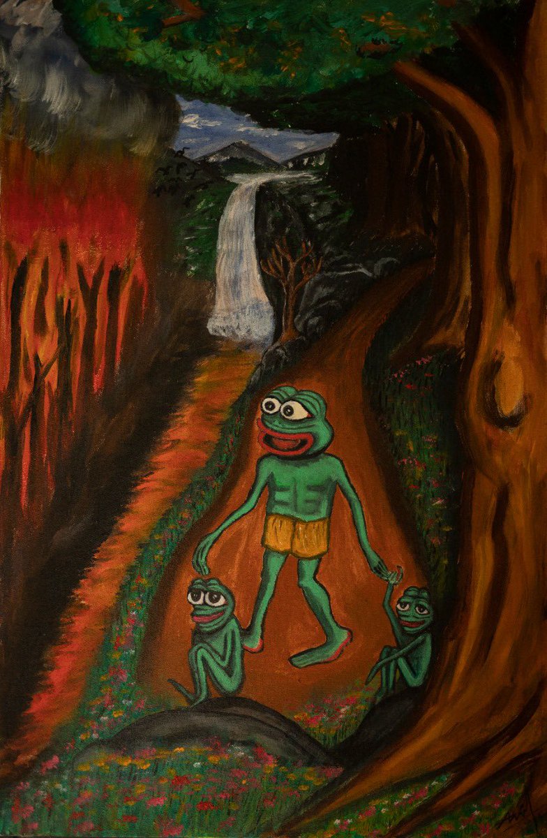 "They are burning my home" - Pepe. My Pepe is discussing real issues, deforestation and related environmental crisis. Acrylic Art Please share if you like it. @jaggedsoft @elodrawz @MaizeXBT foundation.app/@AnilTPrabhaka… #pepe #pepeart #conservation #acrylicpainting #nftart