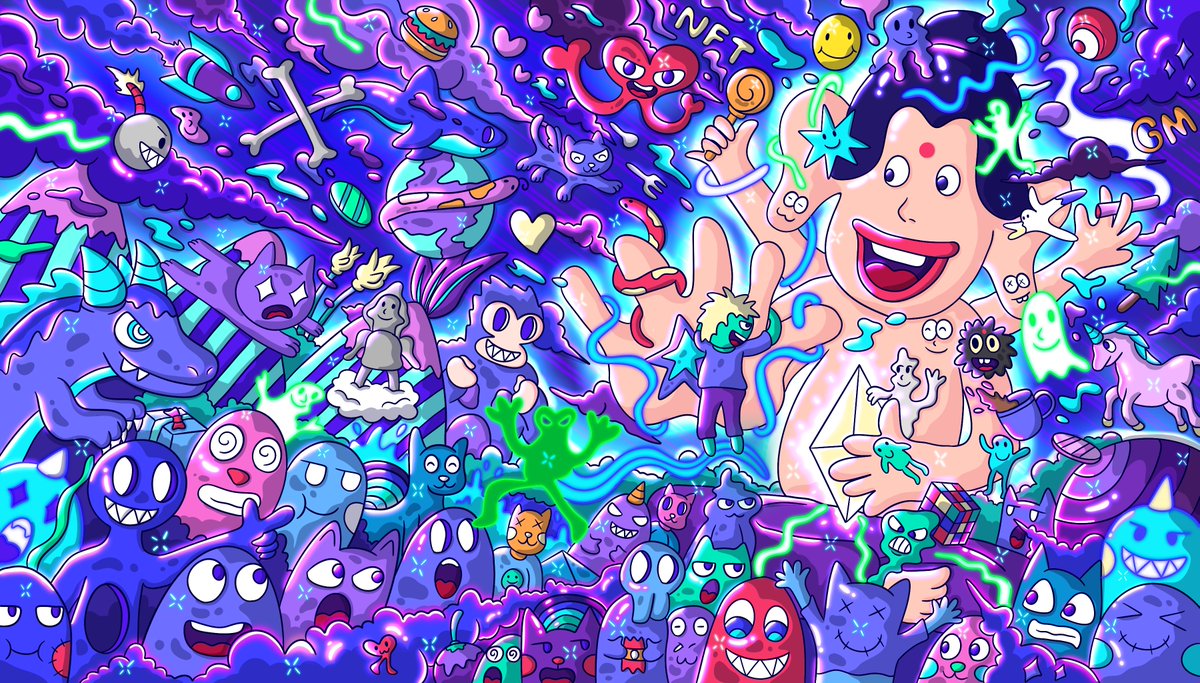 Almost 2 month to make this piece, finally I just list it on @foundation Yeah! I am so proud! 😂💚🥰✌️ "Pepe Happy Town" 🐸🏘 Wish you have a good time here! ▶️ 💰foundation.app/@YukanArtStudi… #pepe #PEPEnft #frogfam #pepethefrog #NFT #NFTartists #NFTCommunity #illustration