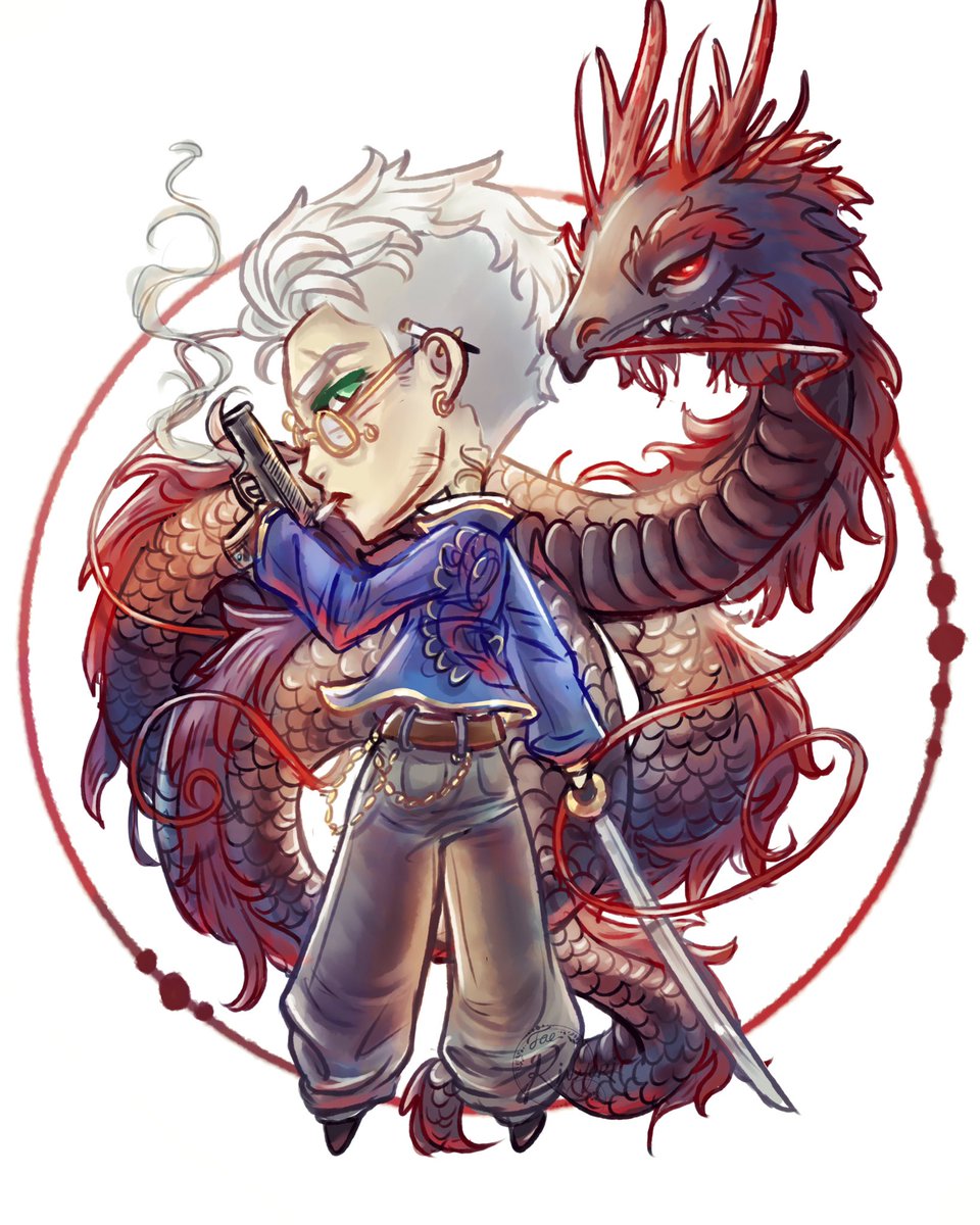 Couldn’t resist giving Percy a Yakuza make-over. Part of my Crit Role in Japan series. #CriticalRole #CriticalRoleArt #criticalrolefanart #percival #chibiart #yakuza