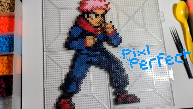 Jujutsu Kaisen - Yuji Itadori Perler Bead Sprite Original Sprite by @Leanb00x #JujutsuKaisen #JujutsuKaisenSeason2 #pixelart #perler #perlerbeads