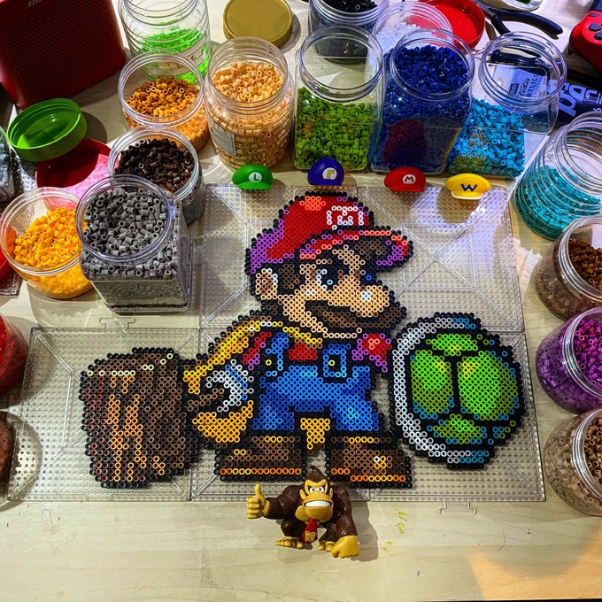 Doodl’n #supermario with Trio Attack Hammer bro shield 🥡 Sprite @Omegachainoboy #perler #perlerbeads #perlerart #perlerartist #hamabeads #pixel #pixelart #pixelartist #8bit #nintendo #mario