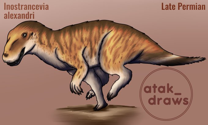 My favorite lizard doggo. #Inostrancevia alexandri was a #synapsid from the Late #Permian of Russia. It belonged to the group that preceded mammals and is the closest related to them. #paleontology #paleoart #animalart #art