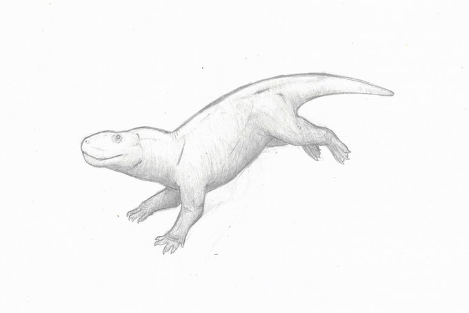 #temnovember2022 day 10: Isodectes For the tenth day of #temnovember we have a small-ish #dvinosaurian from the rivers of early permian of north america, #Isodectes #paleoart #sciart #amphibian #temnospondyl #permian #dvinosaur