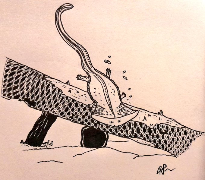 #Temnovember2022 day 25 : Uranocentrodon And so, we arrive at the final stretch of #temnovember, there for, it's time for #Uranocentrodon, a surprisingly large #rhinesuchid from the late Permian of Africa #paleoart #sciart #temnospondyl #amphibian #permian