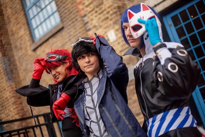 We got our props checked at MCM so we spent the shoot having to cover the tags! Photo: @d.blarg354 Fox: @ixtran Violet: @cereselcosplay Joker: @thesparkofrevolution #persona5 #persona5cosplay #personacosplay #cosplay #violetcosplay #foxcosplay #jokercosplay