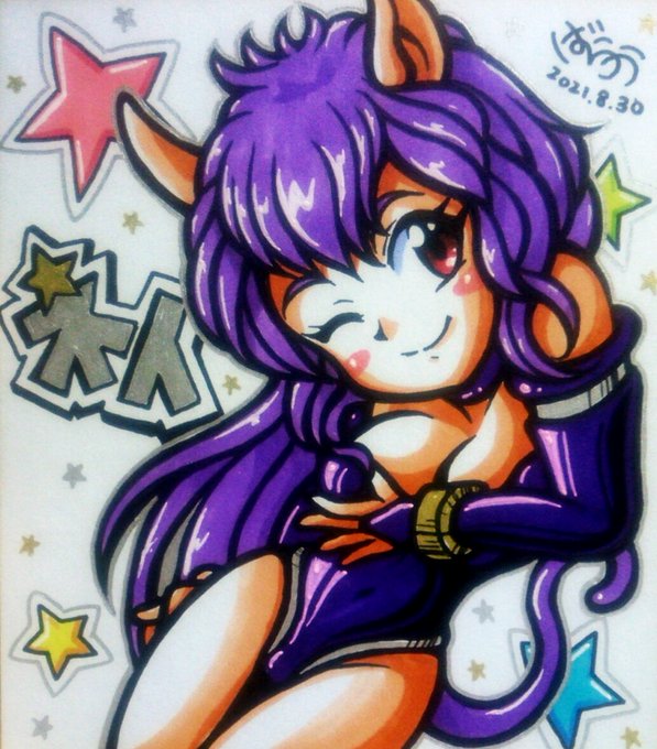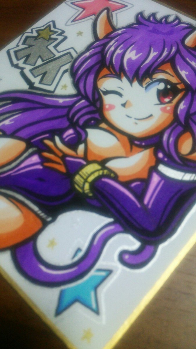ミニ色紙に、ファンタシースターから #ネイ さんを描きました\(^o^)/ 前回のイラストと一緒に! 金銀ペンを使い、キラキラしています(^^) #ネイ生誕祭 #ネイ生誕祭2021 #phantasystar #ファンタシースター #おえかき #イラスト