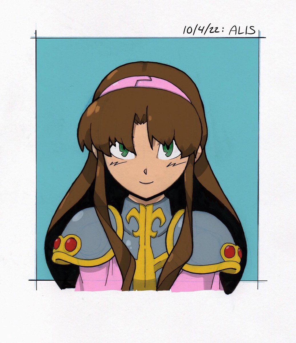 Day 22, back to Phantasy Star with my other favorite character of then original 4 games, Alys (Lyra in Japan) of Phantasy Star 4. Due to timing and other reasons I could not ink this one in time. #phantasystar #inktober #inktober2022
