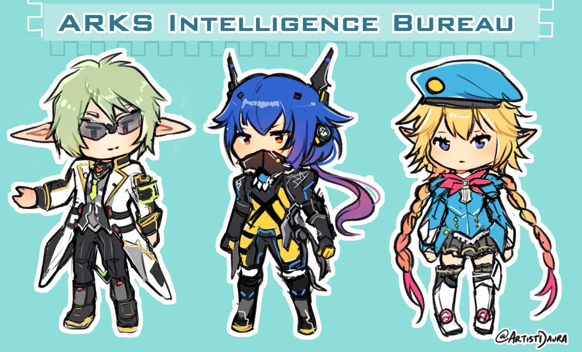 I wanted to give the Intelligence Bureau some love! 💙 NPCS: Casra, Quna and Aika #PSO2 #PhantasyStarOnline2