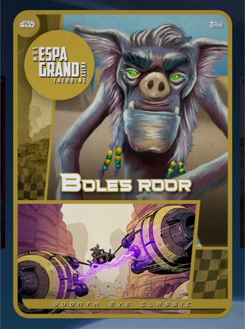 #BoontaEve Classic Cards on the @ToppsSWCT starts Saturday, log in now to get your free one-time-only Team Assignment Pack and see what team your on! Looks to be a fun set! Art by me and @laufman #swct #starwars #podracers #starwars #phantommenace #art #illustration