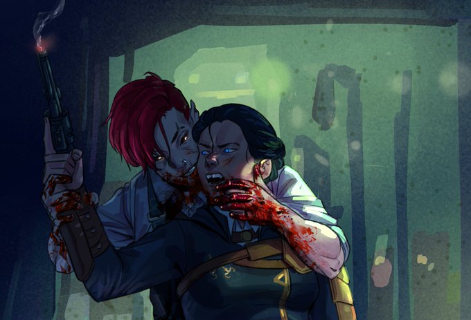 I think this' an obvious one! Hello~ Do you though I just gave up? Well no my dear! I'll complete that prompt list even if take me months to do it! #Scarecane #inktober2022 #inktober #day9 #FavoriteScene #PiltoverFinest #Caitvi #arcane #arcanefanart @cityofprogress_ #AlexKacr