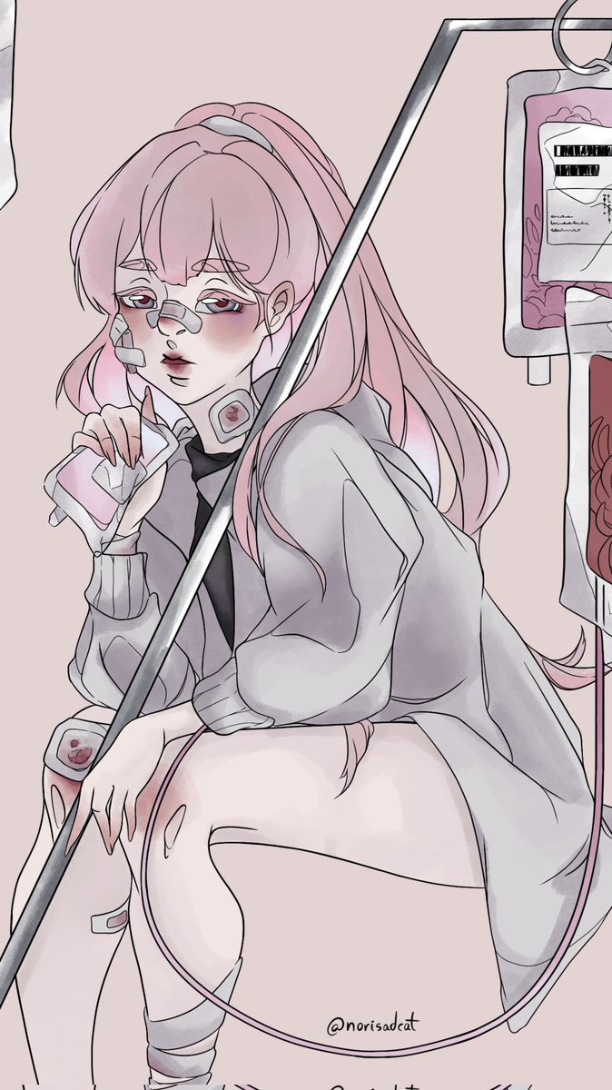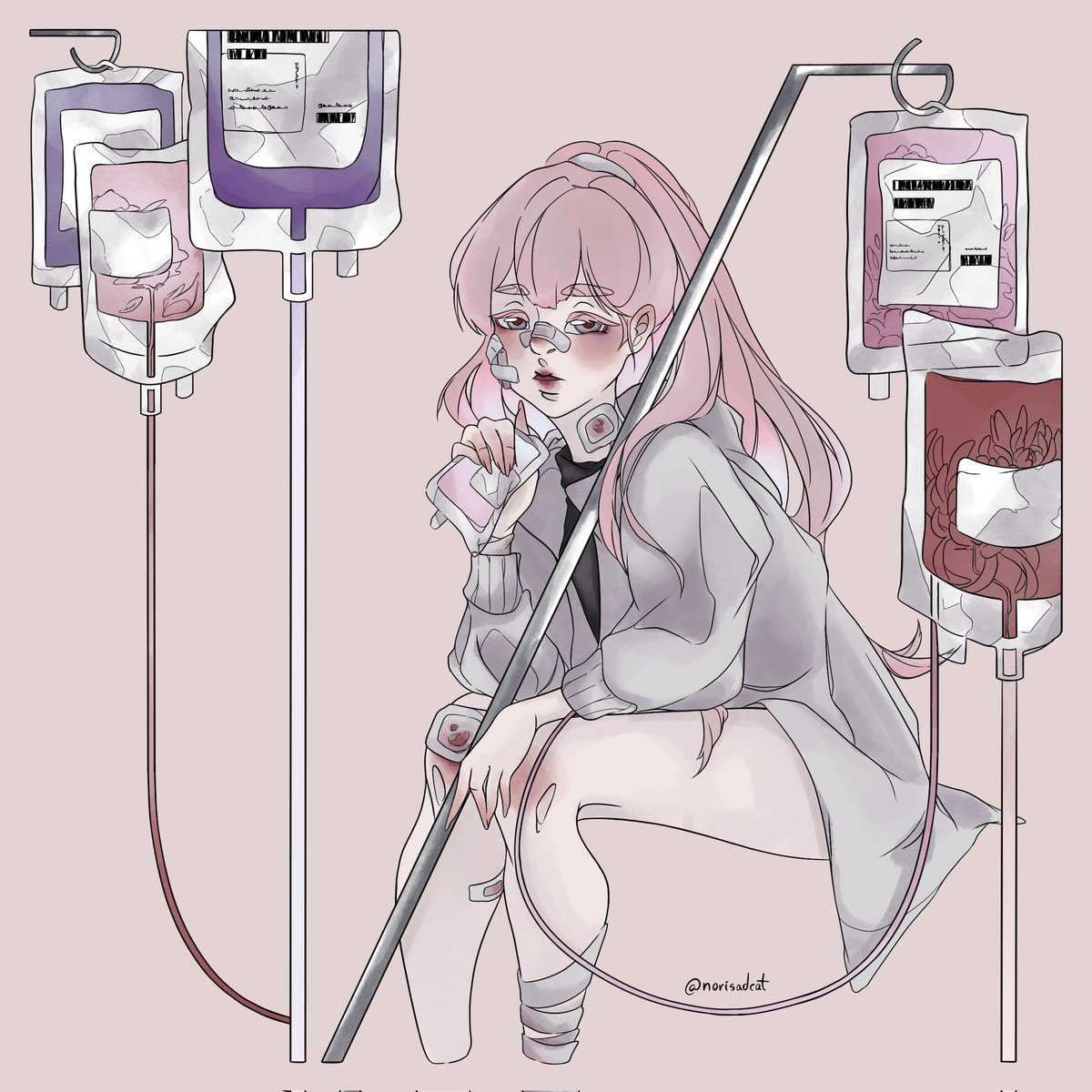 (P)INKTOBER DAY 19~20, #breakfast Last inktober I was drawing flowers in an oxygen mask and this one I wanted to make them in the dropper(? I missed painting them, but I still feel that it looks pretty❤️🩹 #ArtistOnTwitter #arttwt #isabeepinktober #pinktober #inktober #illness