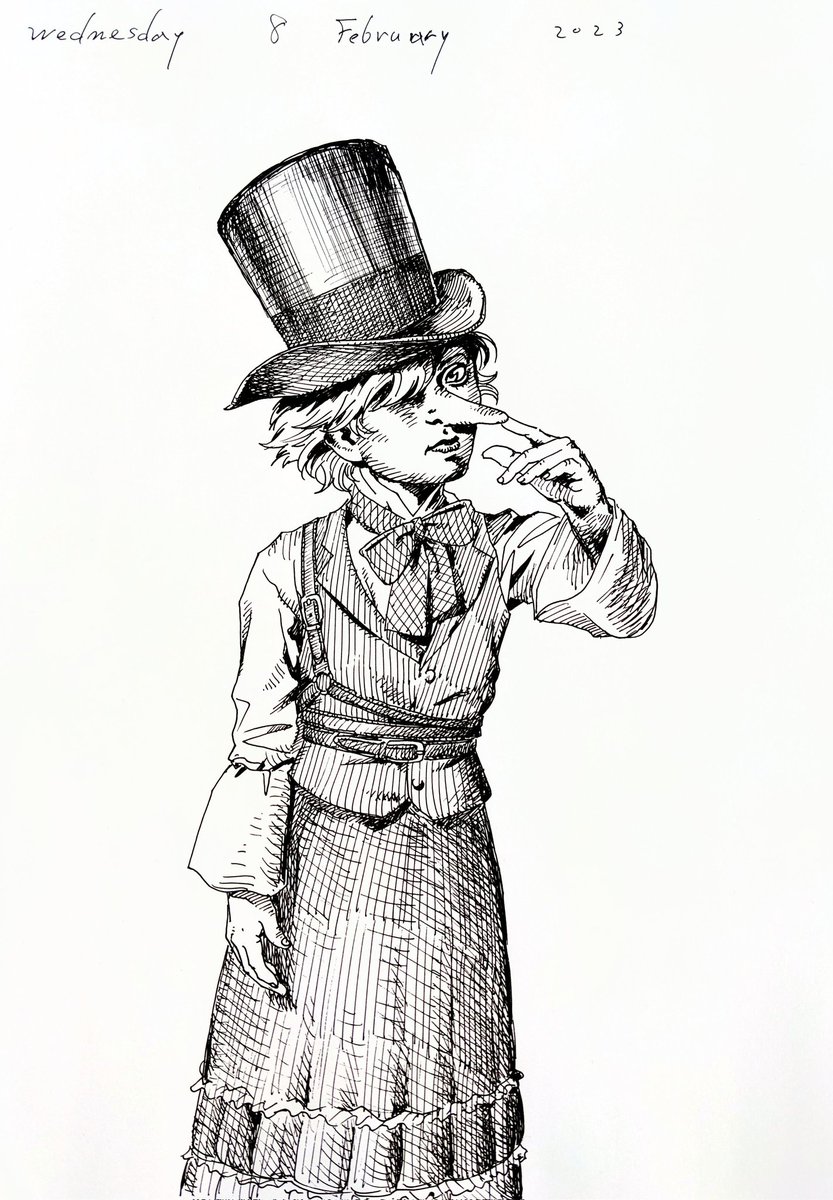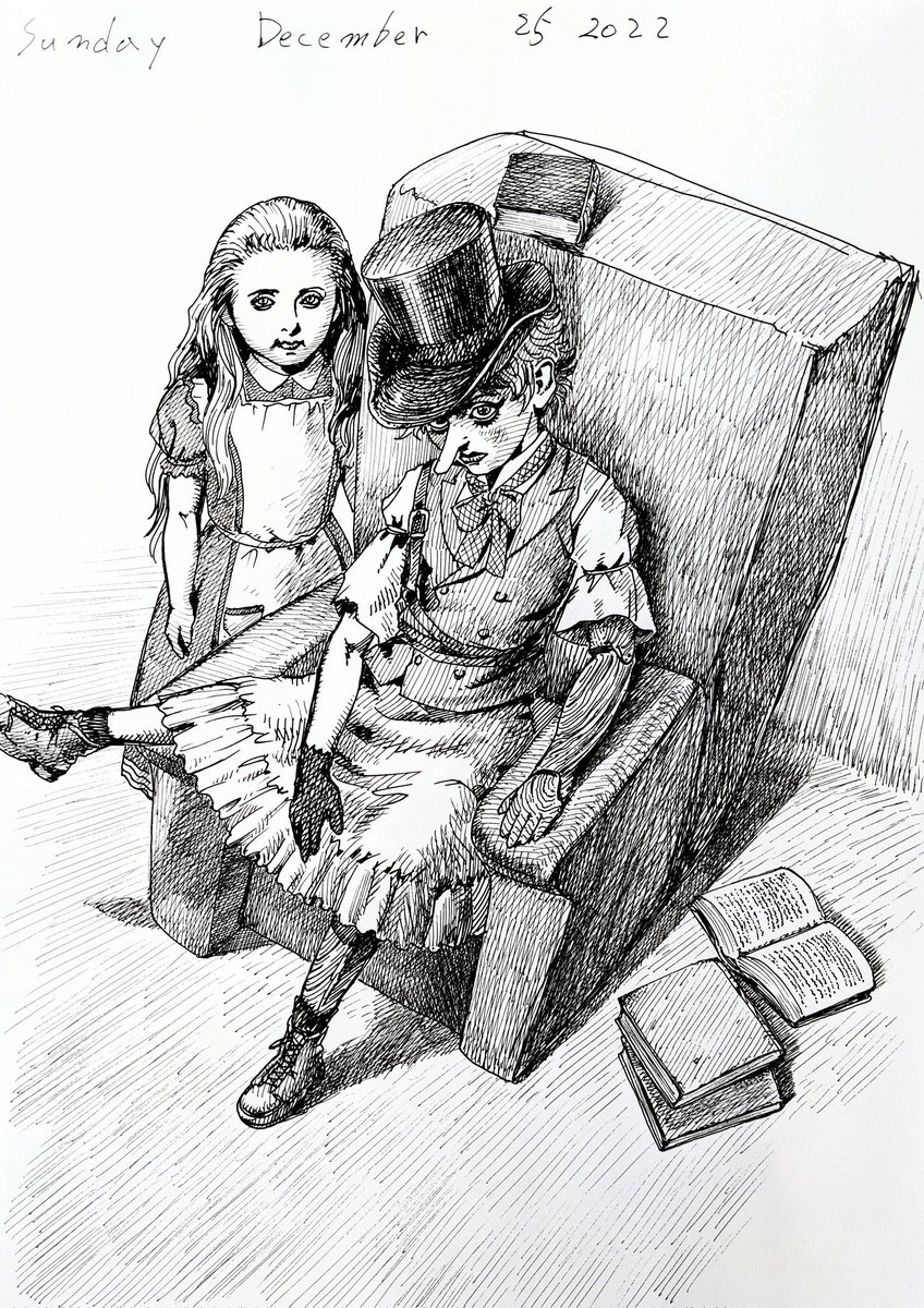 ピノッキオ&アリス イメージ A4コピー用紙 水性ペン #drawing #pinocchio #Image #illustration #ペン画 #ピノッキオ #イラストレーション #イラスト #絵