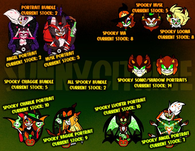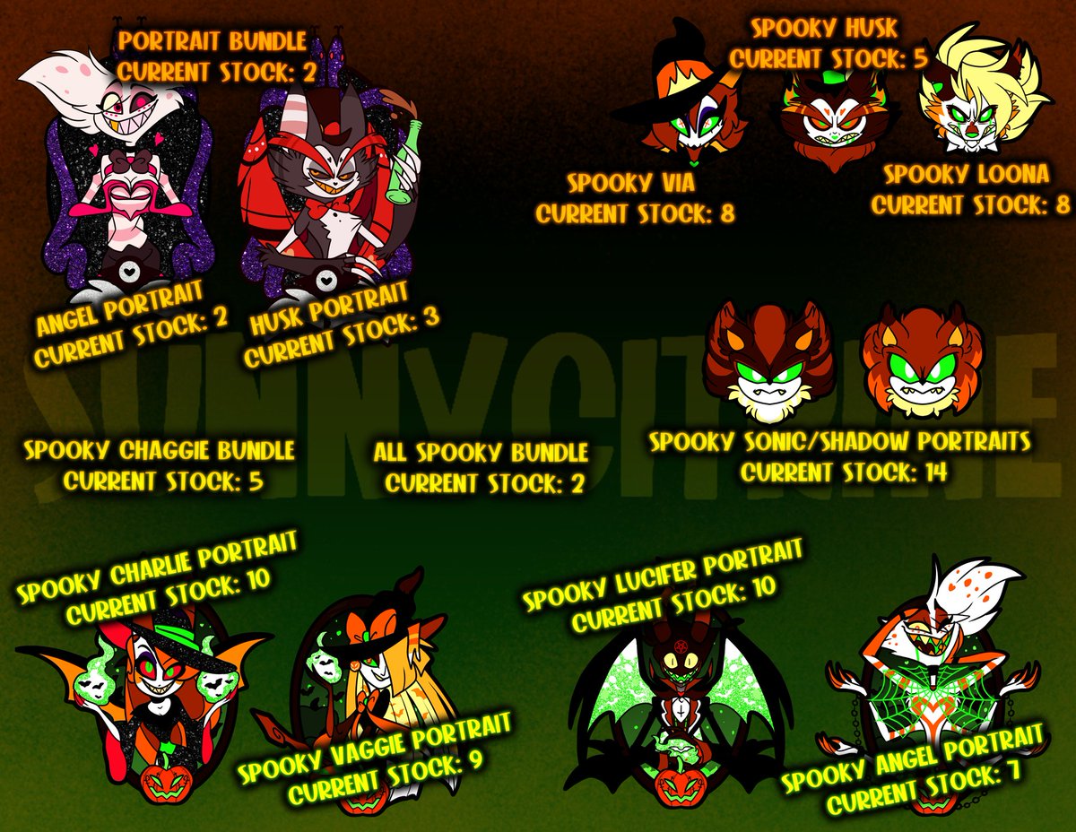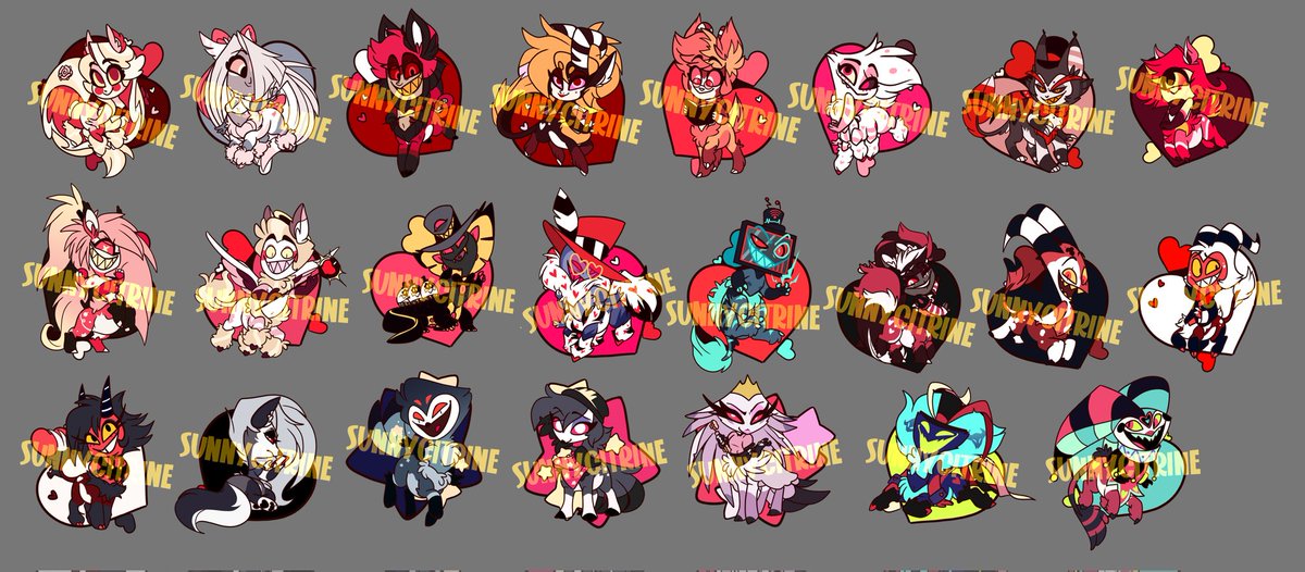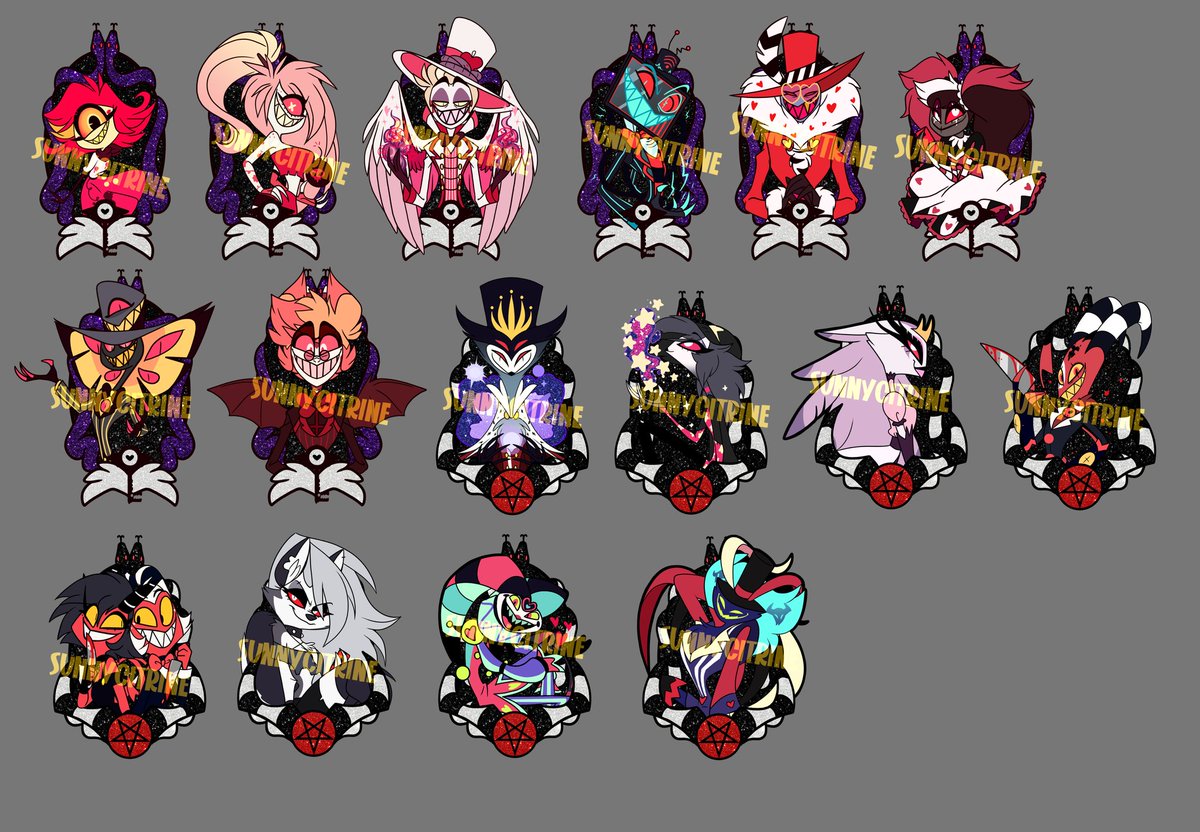 Current pin stock update before the physical pins arrive!! 💖💖 #HazbinHotel #HazbinHotelFanart @hazbinfanmerch #Pins #AngelDust #Husker #CharlieMagne #vaggie #Lucifer #Loona #Octavia #HelluvaBoss