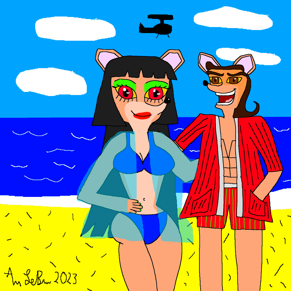 Summer Pinstripe and Summer Joe 🏖🌊☀️🐭🦎 #PinstripePotoroo #KomodoJoe #KomodoBrothers #CrashBandicoot #CrashBandicootFanart #CrashTeamRumble #Summer