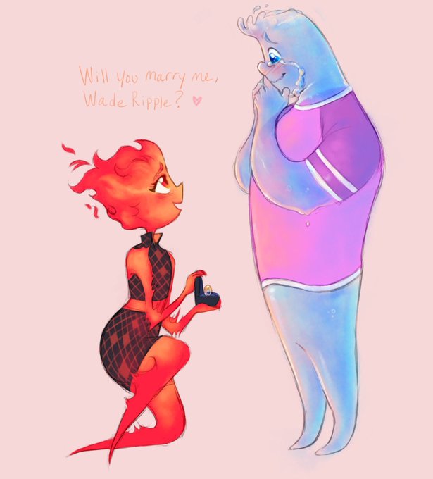 I kinda turned Elemental into a telenovela I saw a post on instagram about a discarded idea of Clod beign heartbroken because he discovers Ember and Wade hanging out. I needed to draw about it sorry #elemental #PixarElemental #elementalfanart