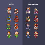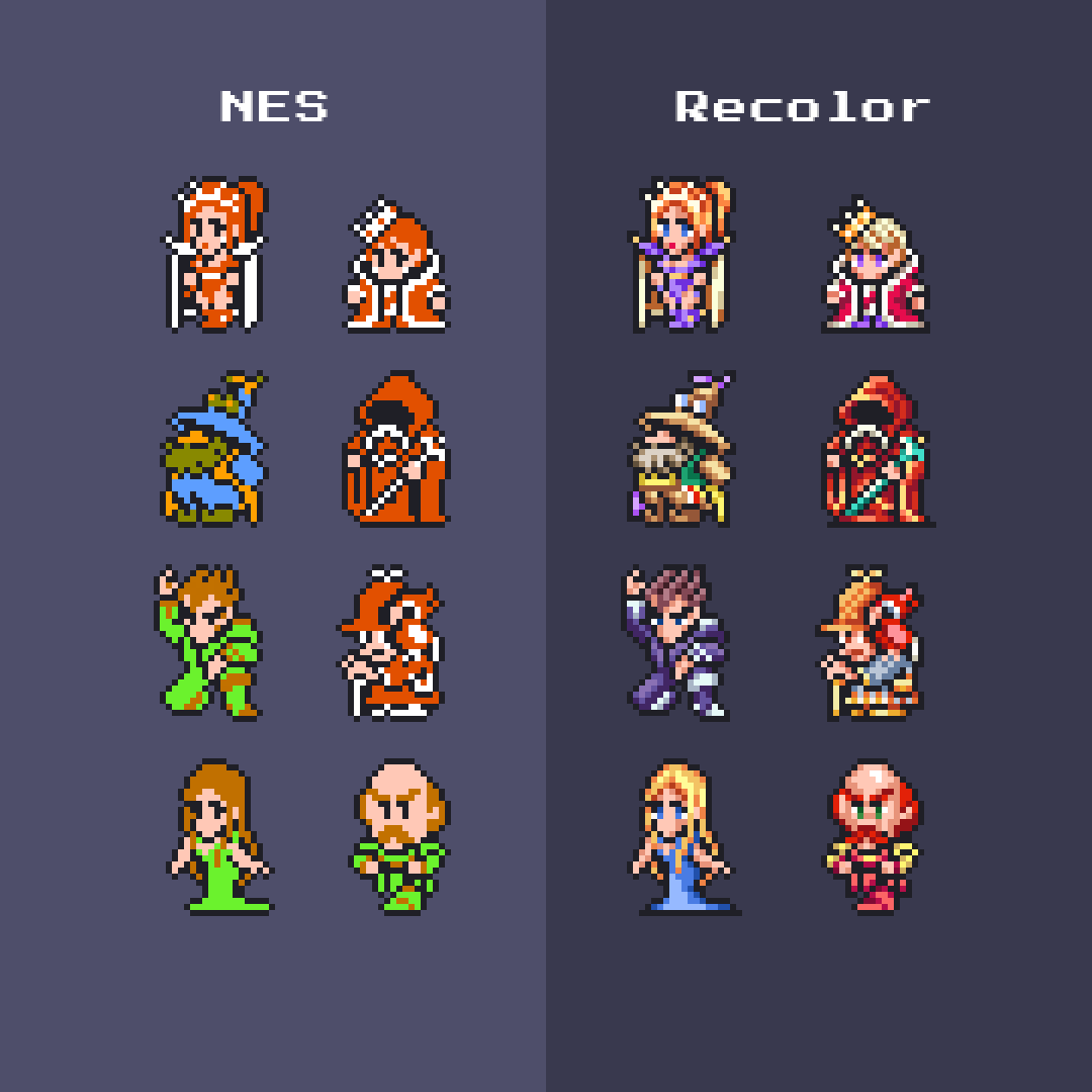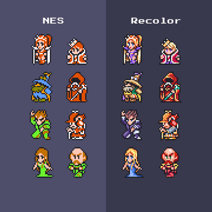 Anyone else disappointed that the sideview guest sprites weren't in FF3 #PixelRemaster? As an exercise I decided to recolor the NES sprites to somewhat resemble their concept art! #pixelart #ドット絵 #finalfantasy