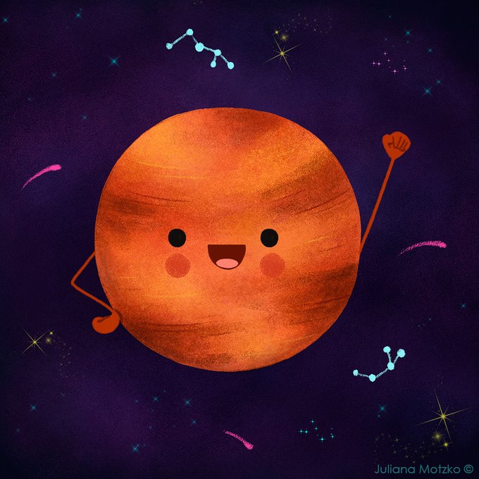 Mars. The Planet of courage, action and confidence. #Mars #Astrology #CuteUniverse #Universe #Planets #Space #Childrenspublishing #childrenillustration #digitaldrawing #art #nursery #cute #science #babylitart #kidlitart #kidlitartist #illustration #illustrator #JulianaMotzko