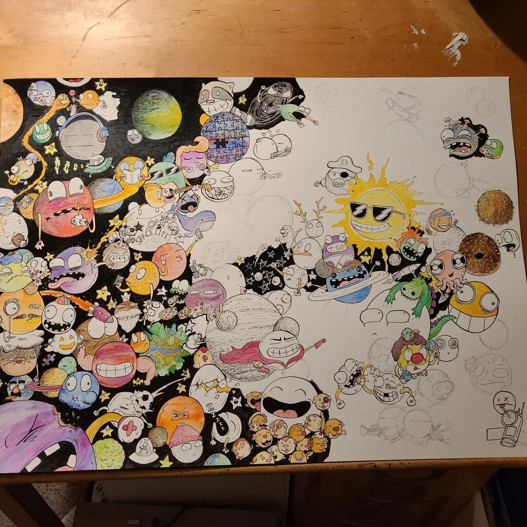 Update the third to my big inktober drawing. Planets planets planets! Or maybe planers according to autocorrect. India ink, inkwash, and watercolor #inktober #ink #drawing #art #spaceart #planets #saucyplanets instagr.am/p/CjQ5eWXPyZy/